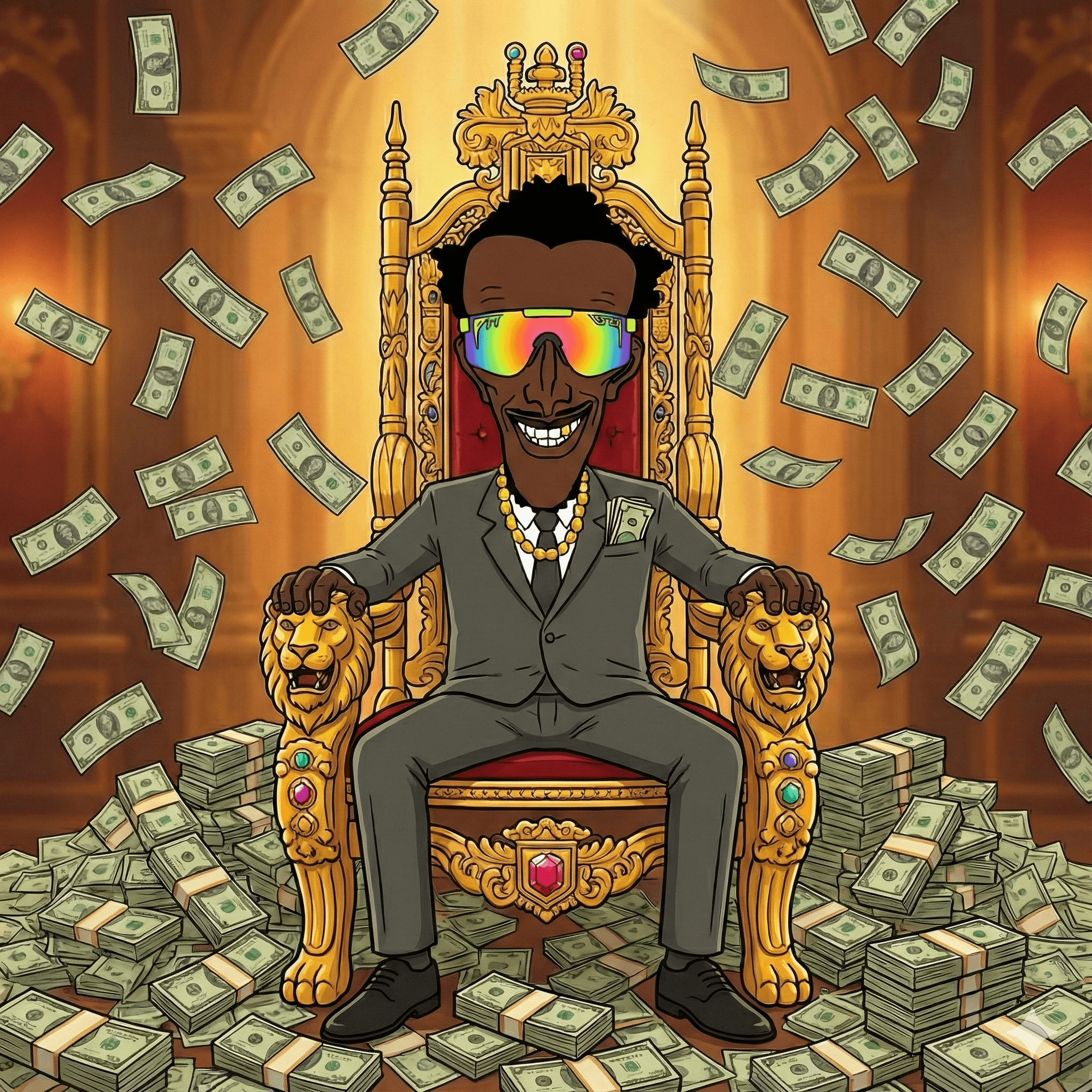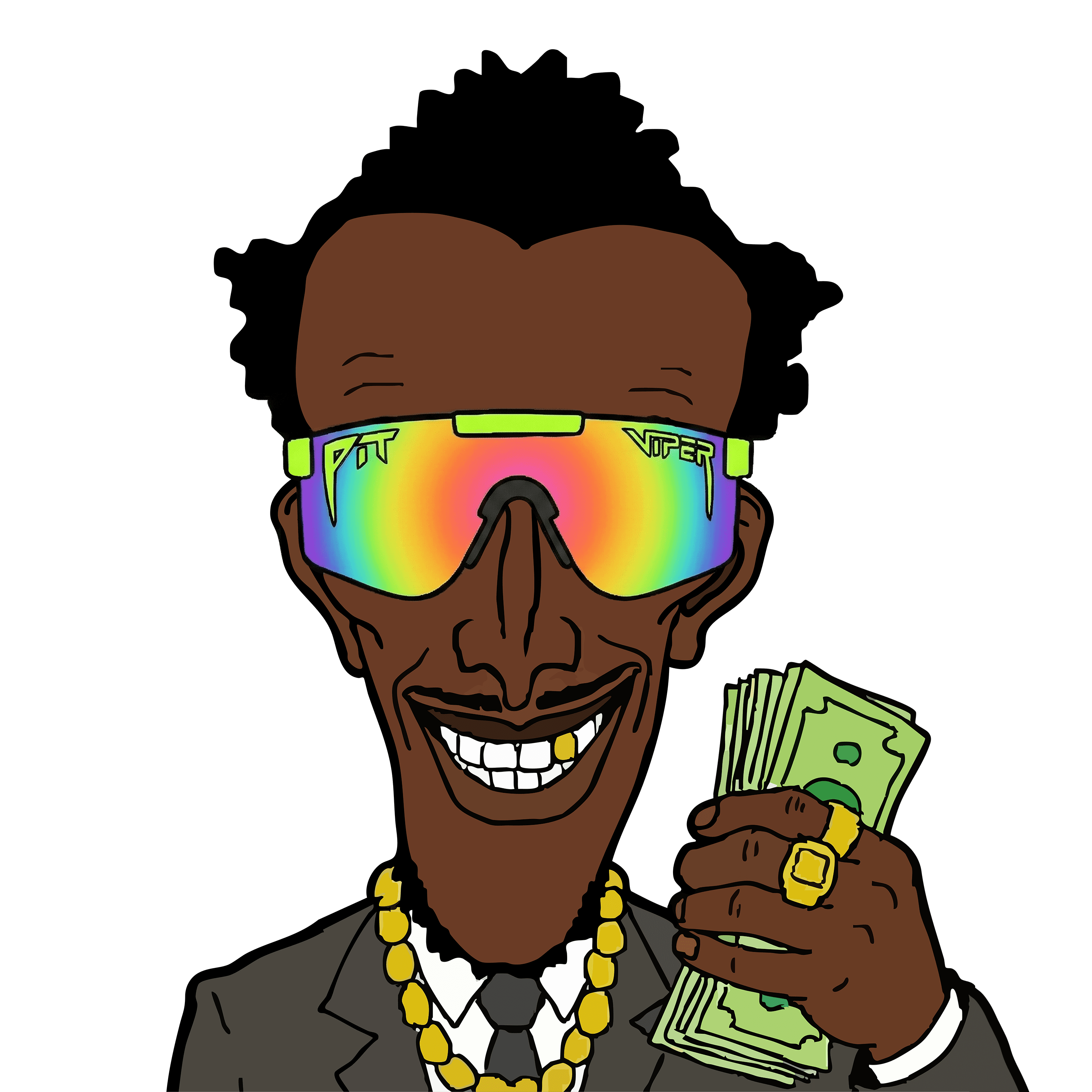 Rocking Pit Vipers, built like a pirate warlord, and funded entirely by vibes and bad decisions.